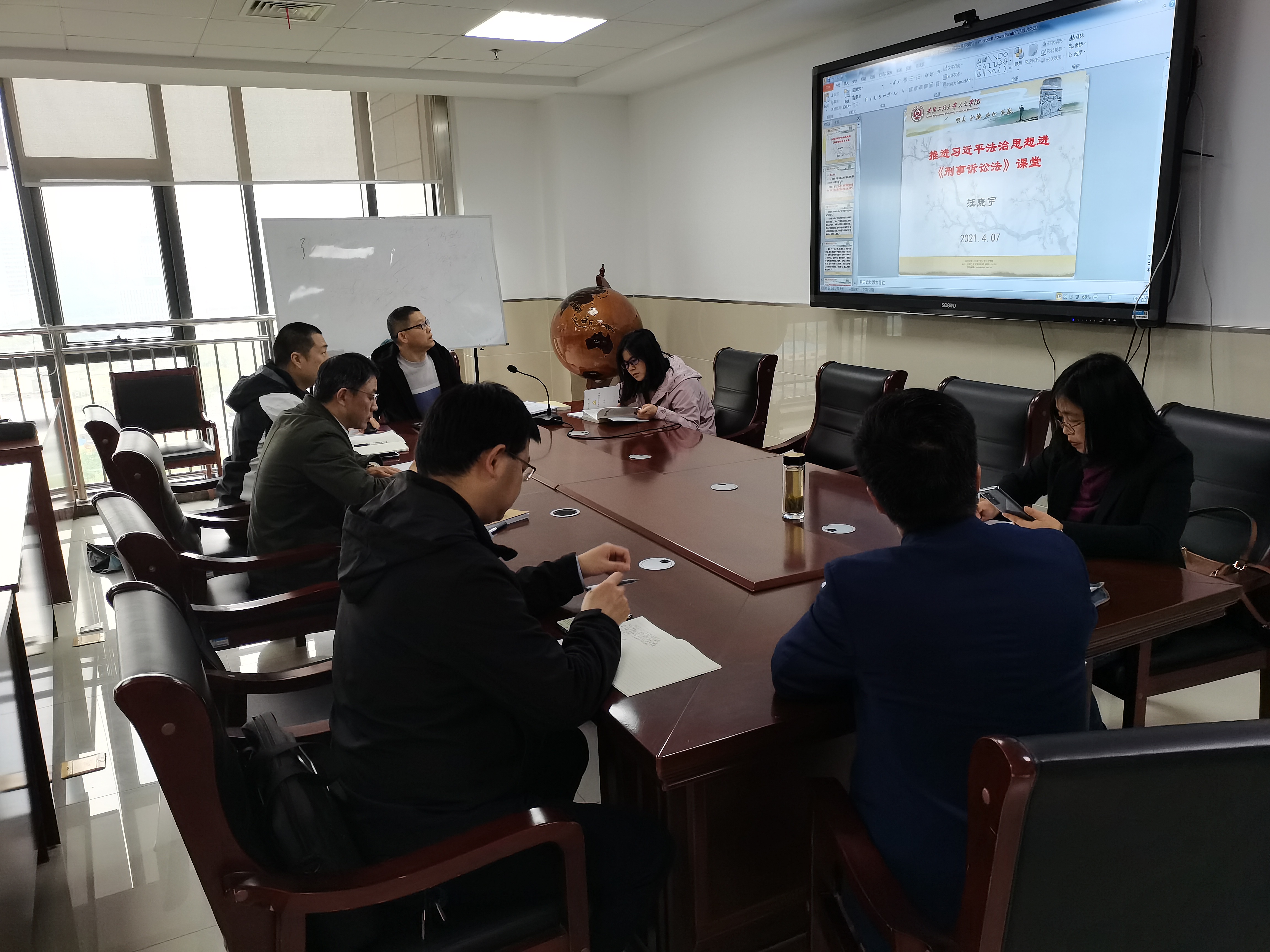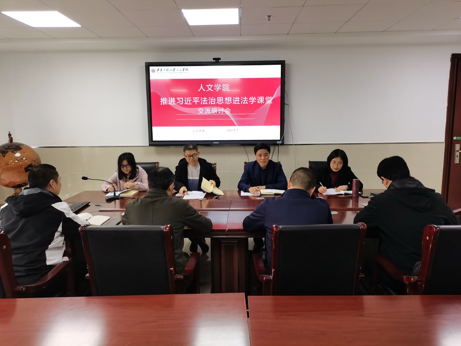为深入贯彻落实习近平法治思想,推动这一重大理论创新成果进课堂,提高人才培养质量,4月7日,人文学院召开“推进习近平法治思想进法学课堂”交流研讨会。人文学院副院长周伟、法学系教师党支部全体党员、法学系全体教师参加了此次研讨会,会议由法学系主任杜蓓蕾主持。