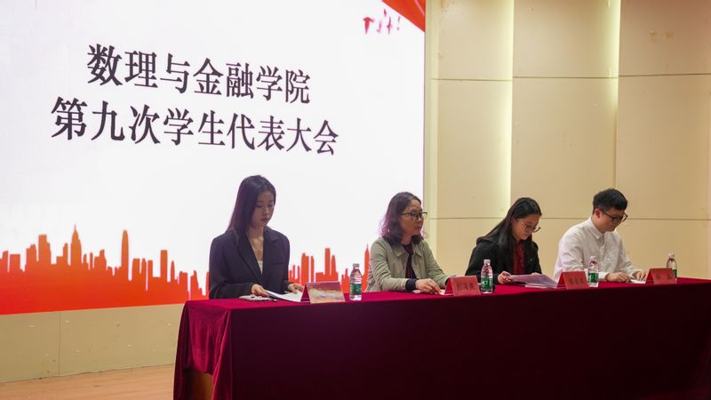 10月29日,数理与金融学院第九次学生代表大会在校学术报告厅召开,学院党委书记彭海燕、团委副书记程安琪、校学生会主席朱玥及全体学生代表参加大会。