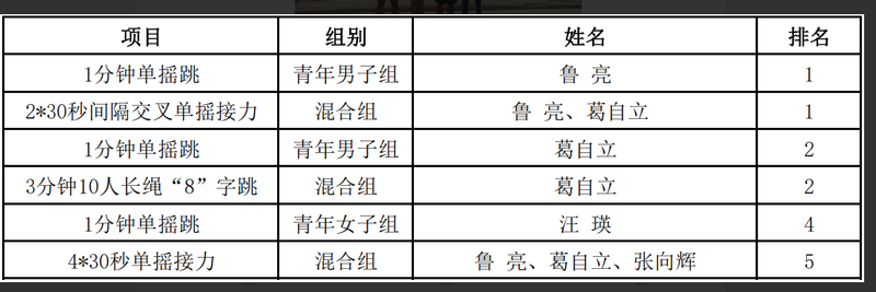芜湖市第十五届运动会(群体部)跳绳比赛于9月7日正式拉开帷幕。我校选派机械与汽车工程学院鲁亮、经济与管理学院汪瑛、计算机与信息学院葛自立、体育学院研究生张向辉4名优秀学生代表镜湖区参赛,凭借出色发挥,在多项目中取得优异成绩,展现了扎实的运动技能和良好的精神风貌。