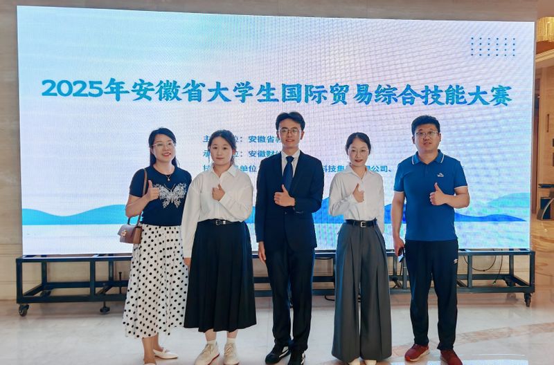 6月9日-10日,2025年安徽省大学生国际贸易综合技能大赛总决赛在安徽财经大学圆满收官。外国语学院张小言、张磊、刘灿三位同学,在黄邵娟、苏涛两位老师的指导下,凭借扎实的专业功底与出色的临场发挥,从众多参赛队伍中脱颖而出,获得一等奖,为学校赢得了荣誉。